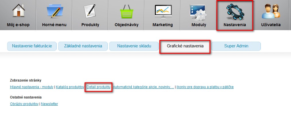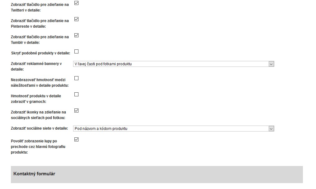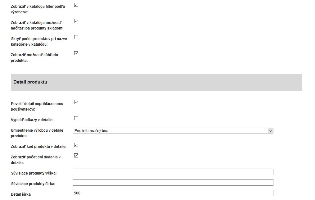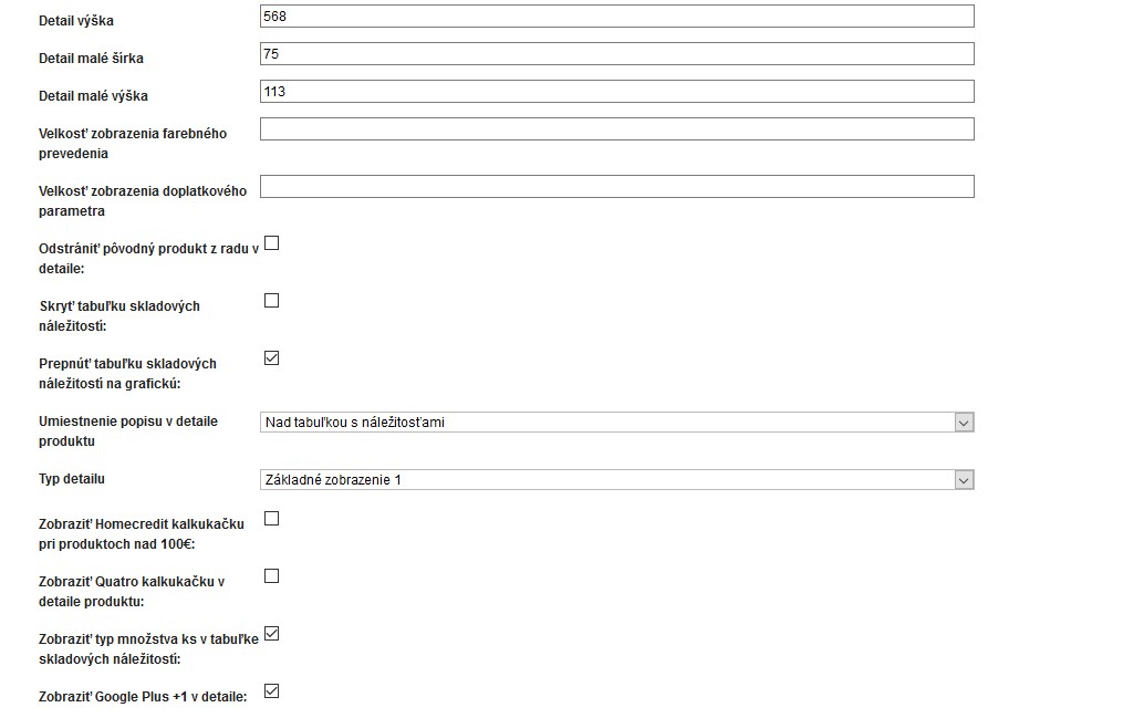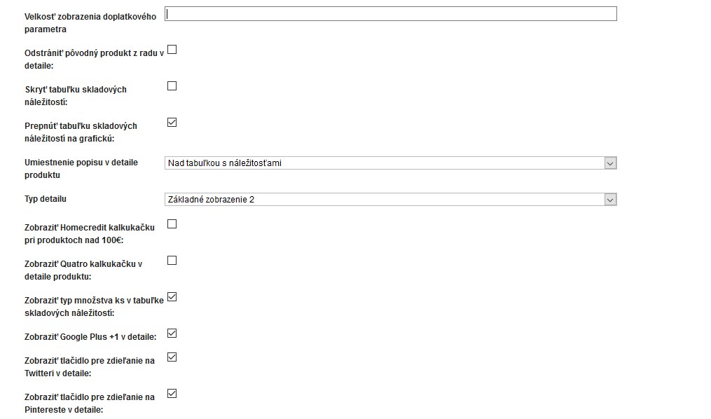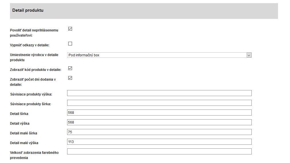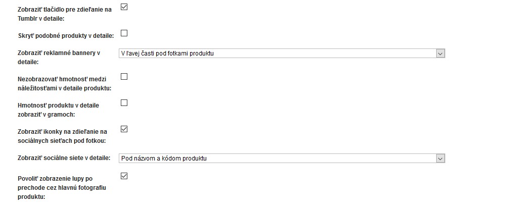 Možnosť voľby rôznych typov detailu produktu