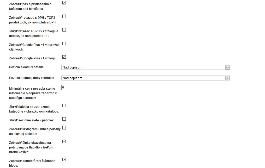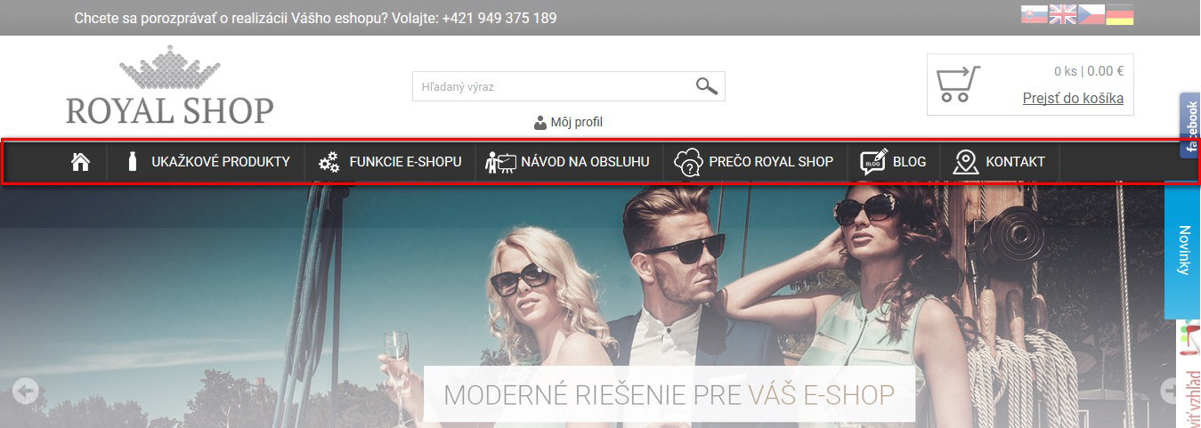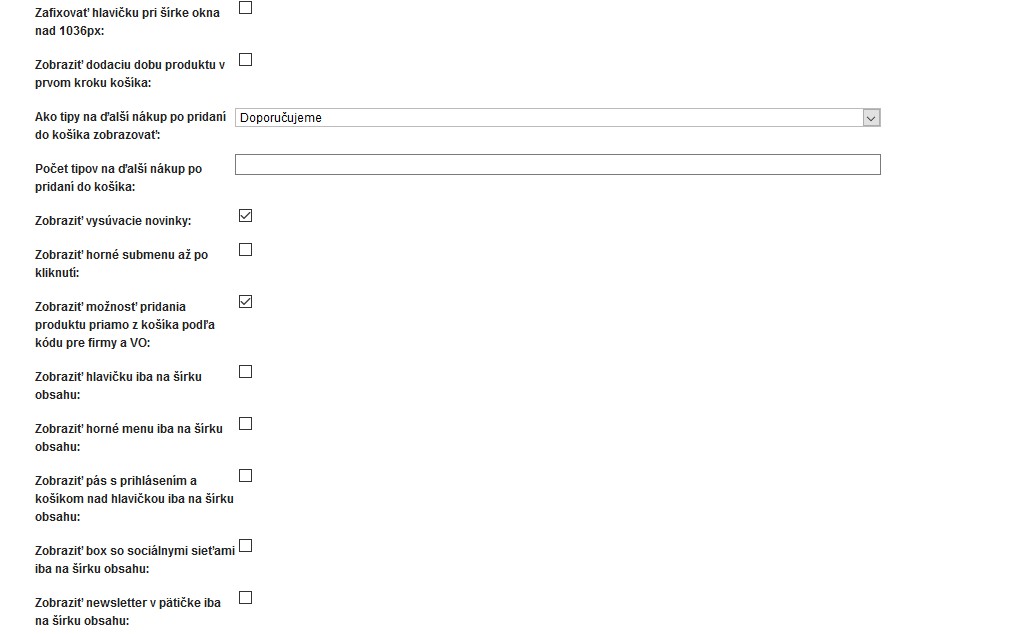 Možnosť fixovania hlavičky eshopu