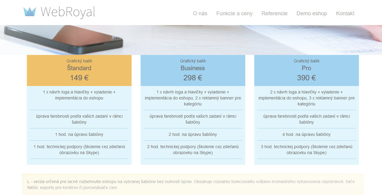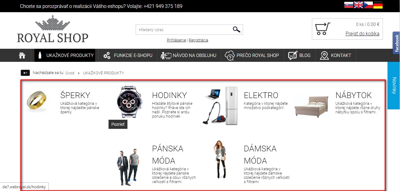 Môžete si pozrieť vzorové e-shopy a vybrať si, ku ktorému by sa mal najviac podobať ten Váš. Následne ho spustíme a v rámci grafického balíka alebo doplnkových prác doupravíme. Čím vyšší balík, tým viac úprav povoľujeme.