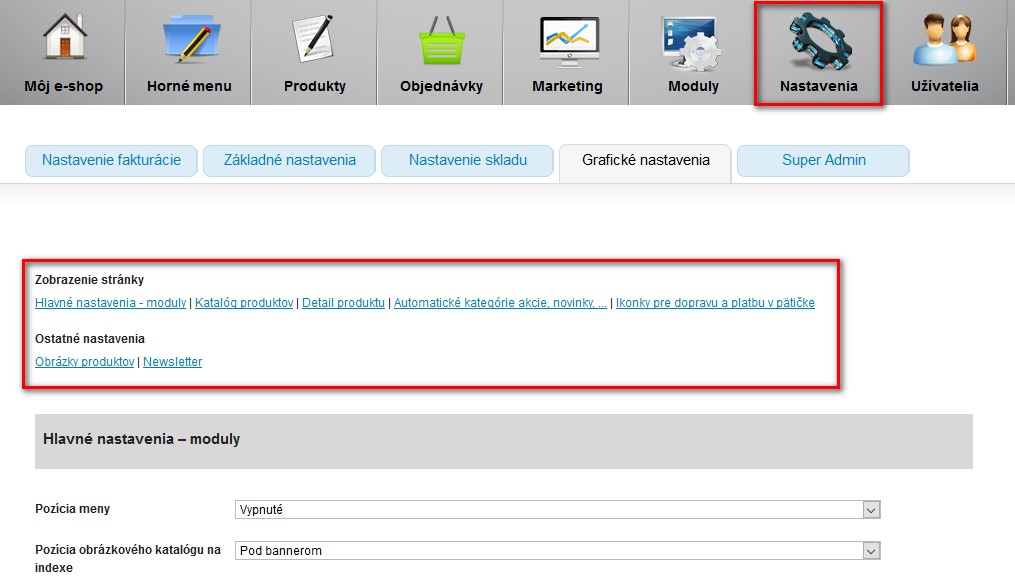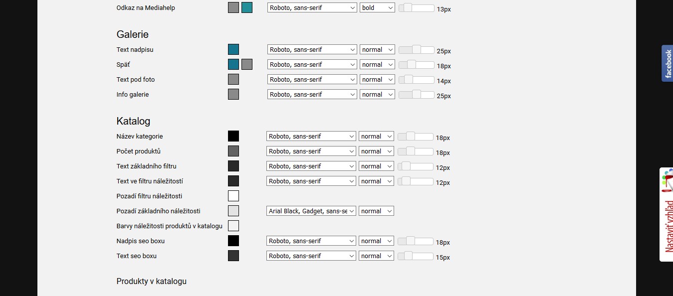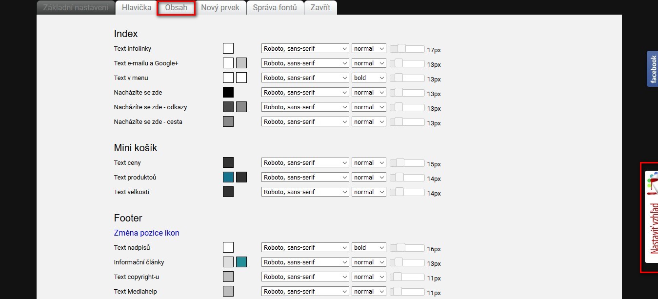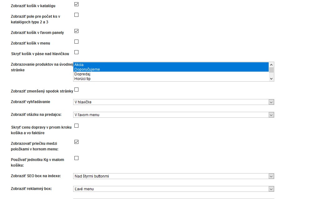 Možnosť ovplyvňovať vzhľad pomocou administrácie: