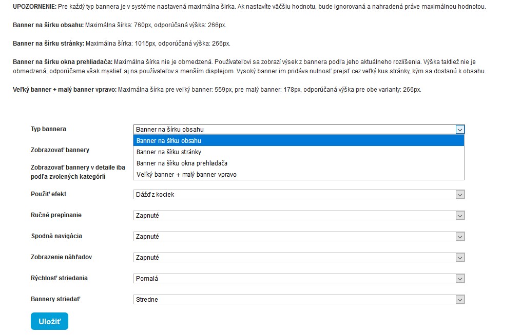 Možnosť nastavenia umiestnenie bannera v rámci stránky