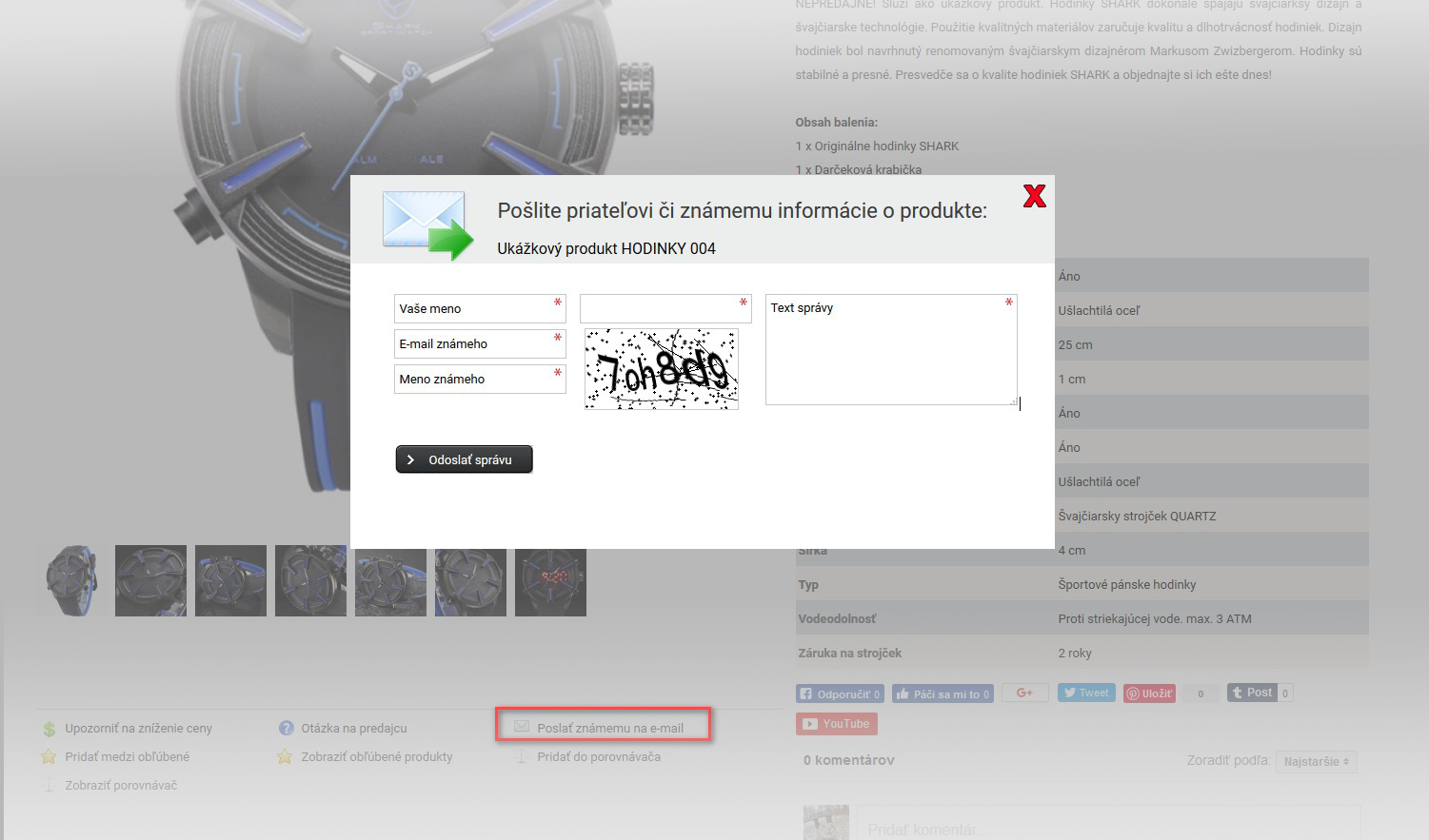 Zaslanie produktu známemu na e-mail