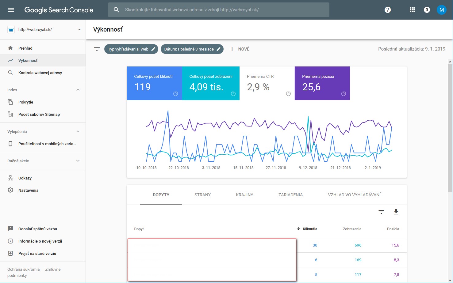 Napojenie na Google Webmaster Tools