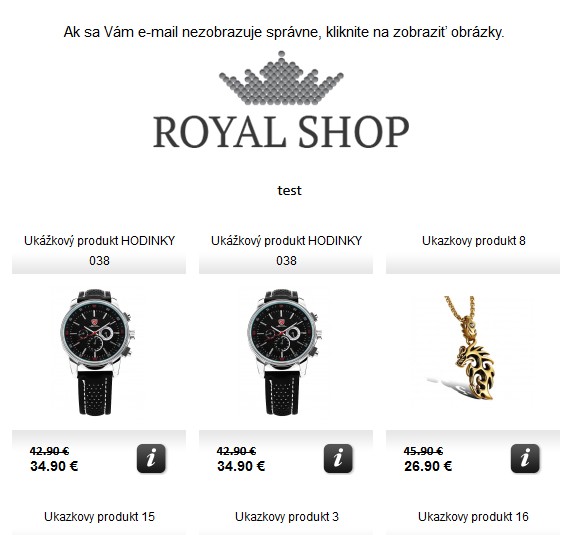 Grafický newsletter s výpisom zvolených produktov, ktoré posielate zákazníkom na email