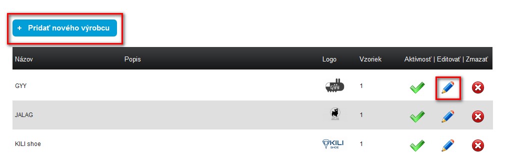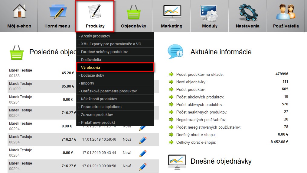 Pod ponukou "Produkty" zvolte "Výrobcovia"