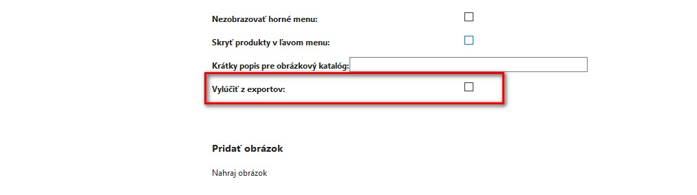 Aby bolo možné produkt vylúčiť len pre vybrané exporty, každé vylúčenie či už cez produkt, alebo kategóriu podlieha funkcii exportu: