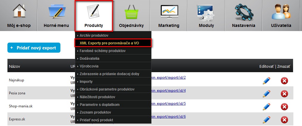 Kde po editácií exportu nájdete funkciu: